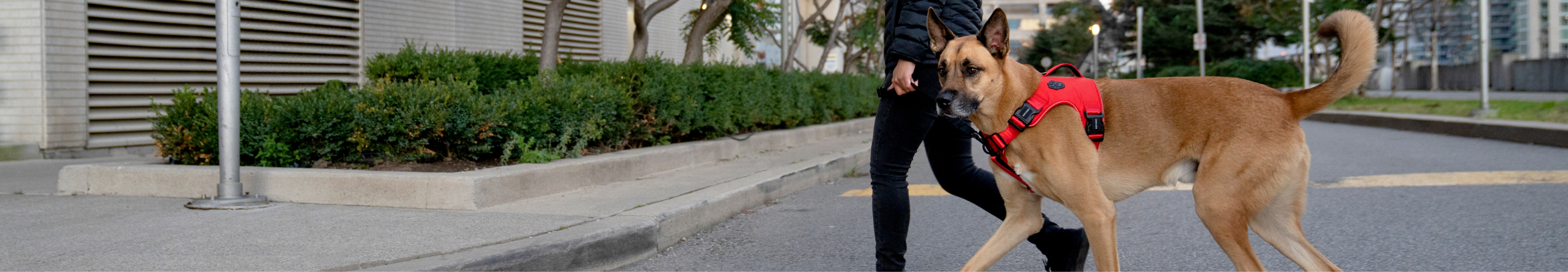 A good fit in the harness is essential to keep your pup safe! As a general guide, the harness should be snug in the neck and chest, but you should be able to fit two fingers between the straps and your pup’s body. If you’re unsure if the fit is right, our Product Experts are always happy to take a look - reach out to us!